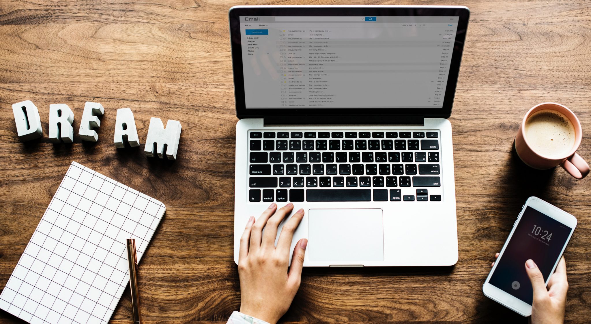 Home office desk with laptop and notebook styled
