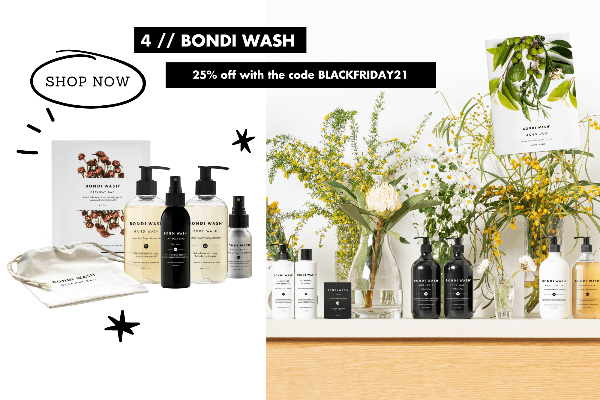 25% off the entire range with the discount code BLACKFRIDAY21 [does not include the Best Seller Box or Subscription Boxes]